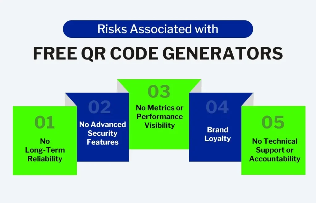 Free tools may offer limited security, no scan analytics, and only static QR codes. This means businesses cannot update links after printing or monitor performance, which can lead to broken campaigns, outdated information, or reduced customer trust.